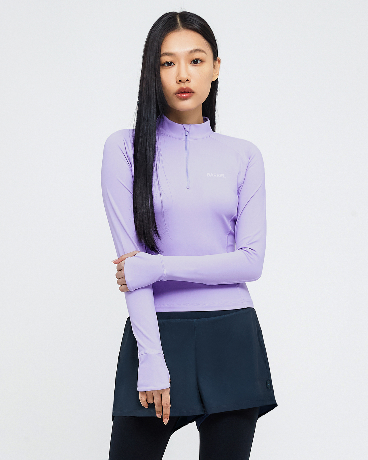 우먼 에센셜 하프 집업 크롭 래쉬가드 라벤더 085